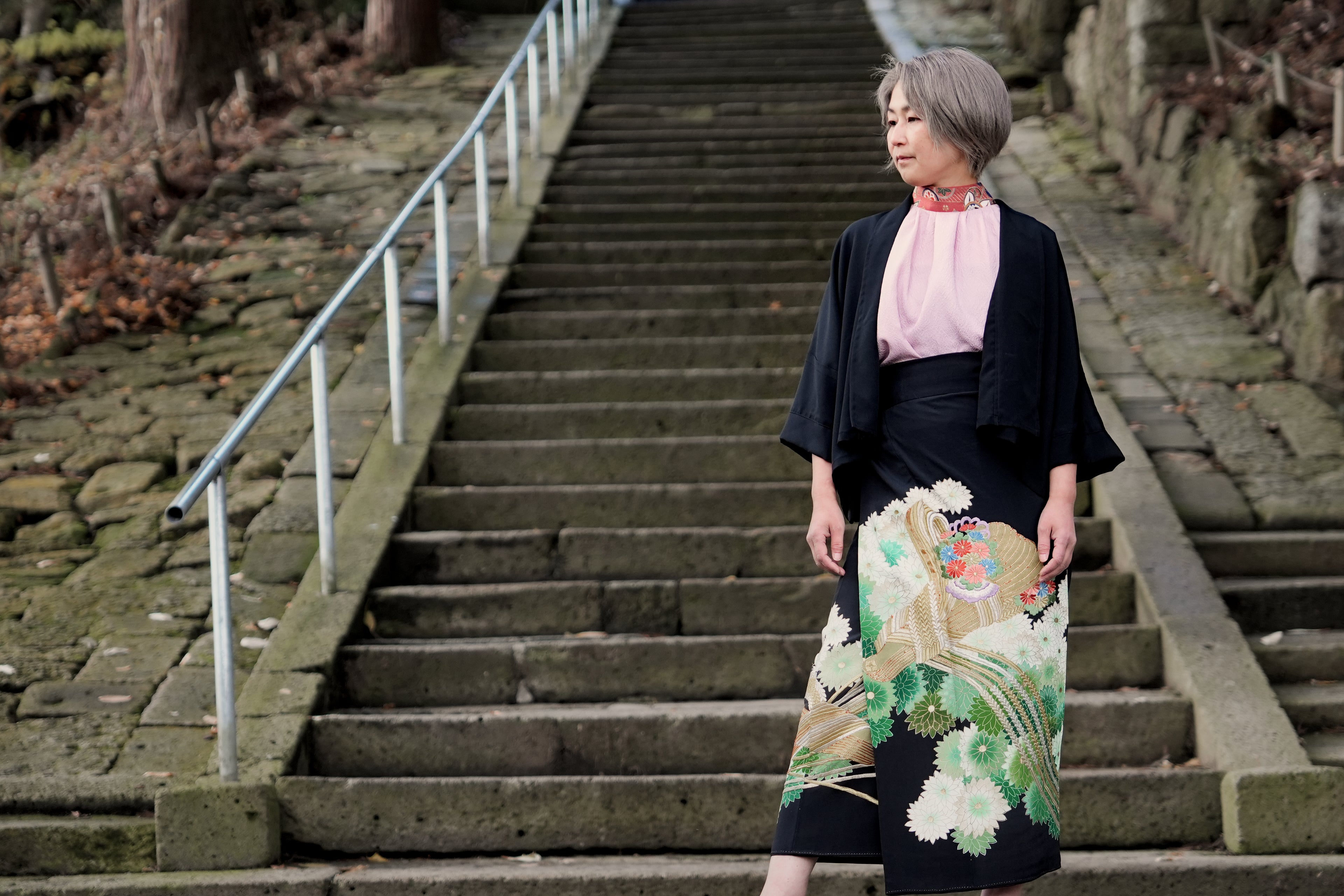 古い着物をリメイクすることで、新たな価値を生み出すサステナブルファッションの一環です。タンスの中の大切な着物が、再び日の目を見ることで、環境にも優しく持続可能なファッションを楽しむことができます。