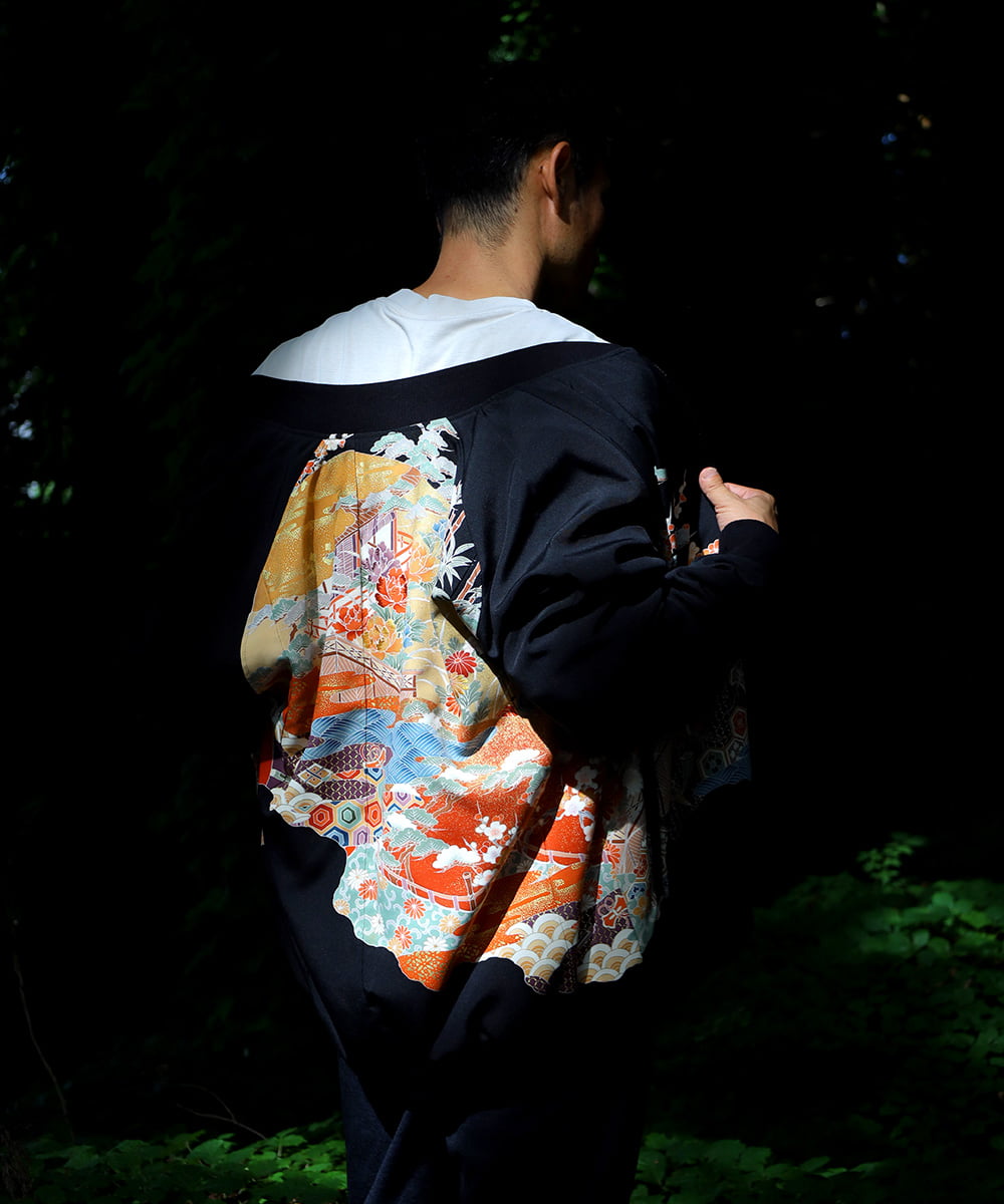 山景色文 巻きスカート&ジャケットセット 黒留袖リメイク 一点物